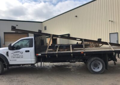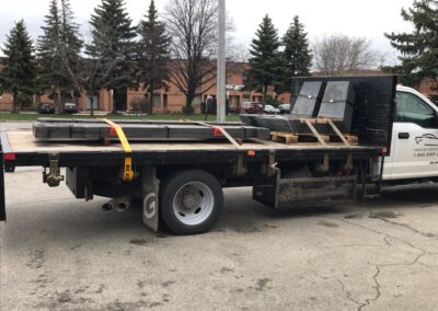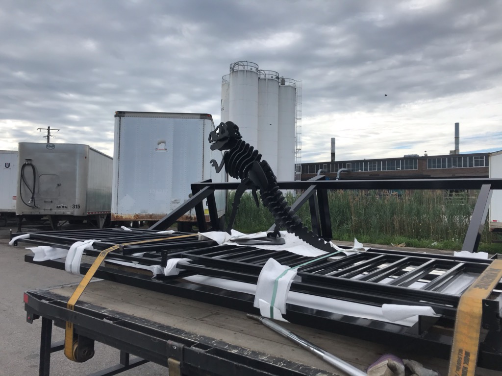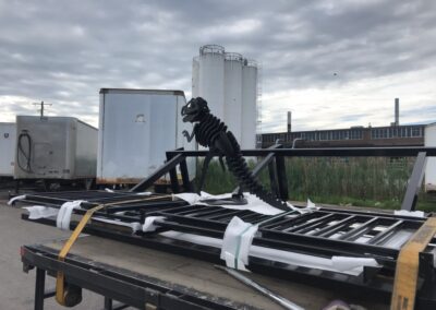 Flatbed truck delivery of a….Yes, it’s a dinosaur. We the NORTH!